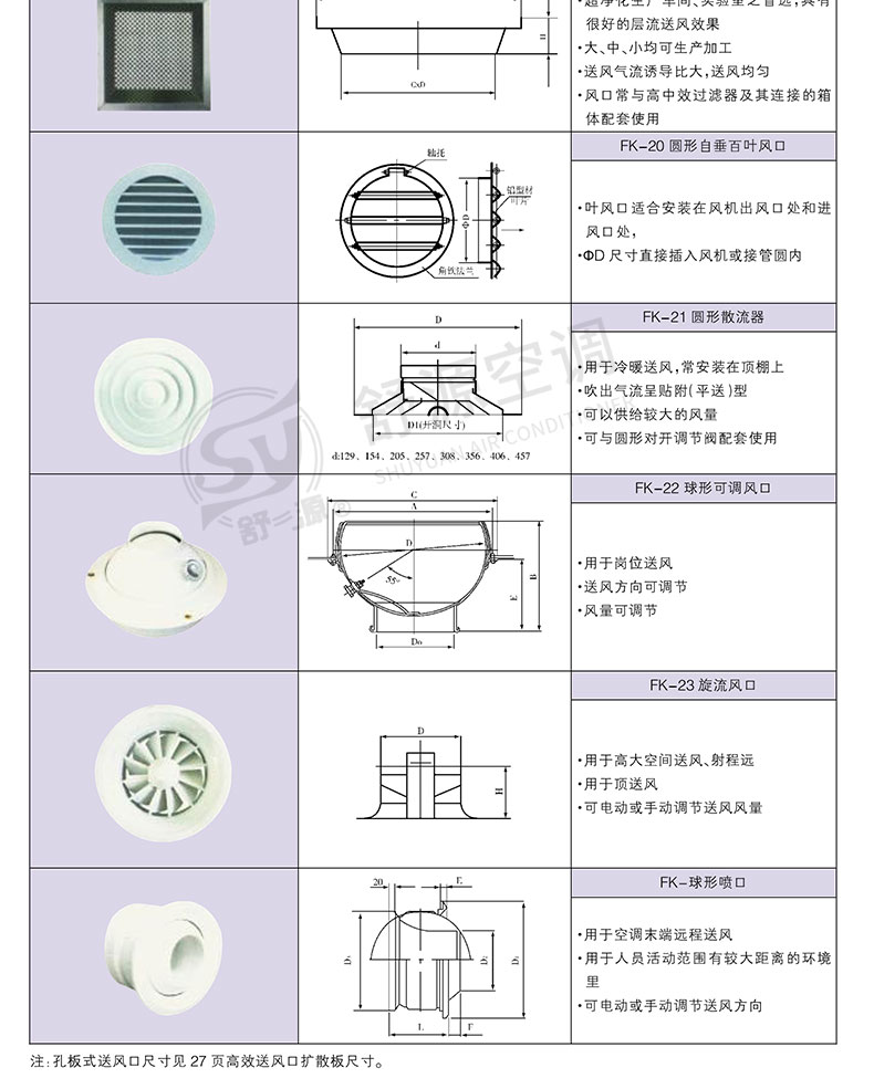 江蘇舒源空調(diào)制造有限公司生產(chǎn)“舒源”牌組合式空調(diào)機(jī)組、柜式空調(diào)機(jī)組、風(fēng)機(jī)盤管和各種規(guī)格通風(fēng)配件、自動(dòng)控制柜、空氣凈化及防火閥消聲類產(chǎn)品,亦承接空調(diào)通風(fēng)工程、凈化工程的設(shè)計(jì)、制作安裝業(yè)務(wù),并可根據(jù)用戶需要設(shè)計(jì)制造非標(biāo)產(chǎn)品。
